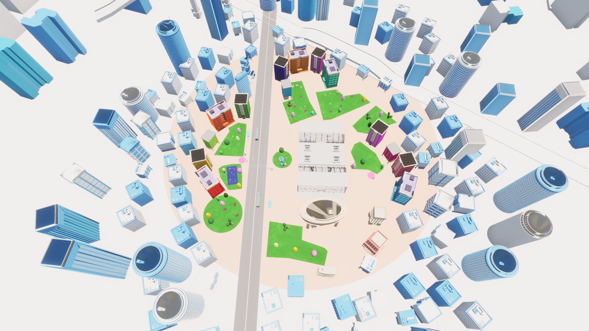 Partant des souhaits du client, Utopia a dessiné le plan d’une ville et modélisé une première version de principe. Nous avons précisé un univers graphique low poly (bâtiments, mobiliers, personnages) et piloté pas à pas la création 3D du monde virtuel. Nous avons encadré la création de vidéos (dimensionnement et scénarisation, création d’un personnage en motion-design (Léo), sélection et enregistrement d’un comédien et suivi de production).